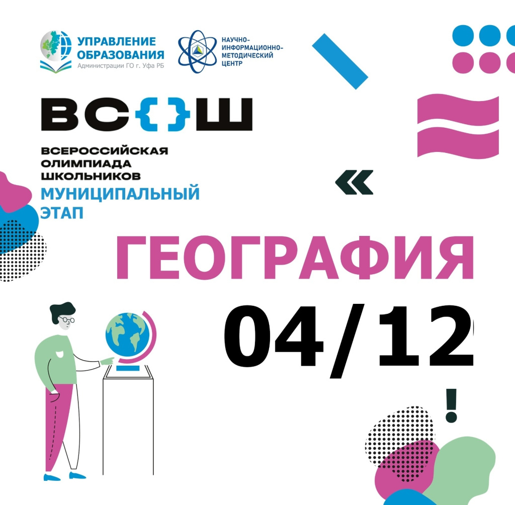 4 декабря в Школе №103 с углубленным изучением иностранного языка, Гимназии № 105 им. Н.И. Кузнецова, Школе №14, Центре образования №10, Центре образования № 89, Школе № 156, Лицее №94 стартует муниципальный этап всероссийской олимпиады школьников по географии.